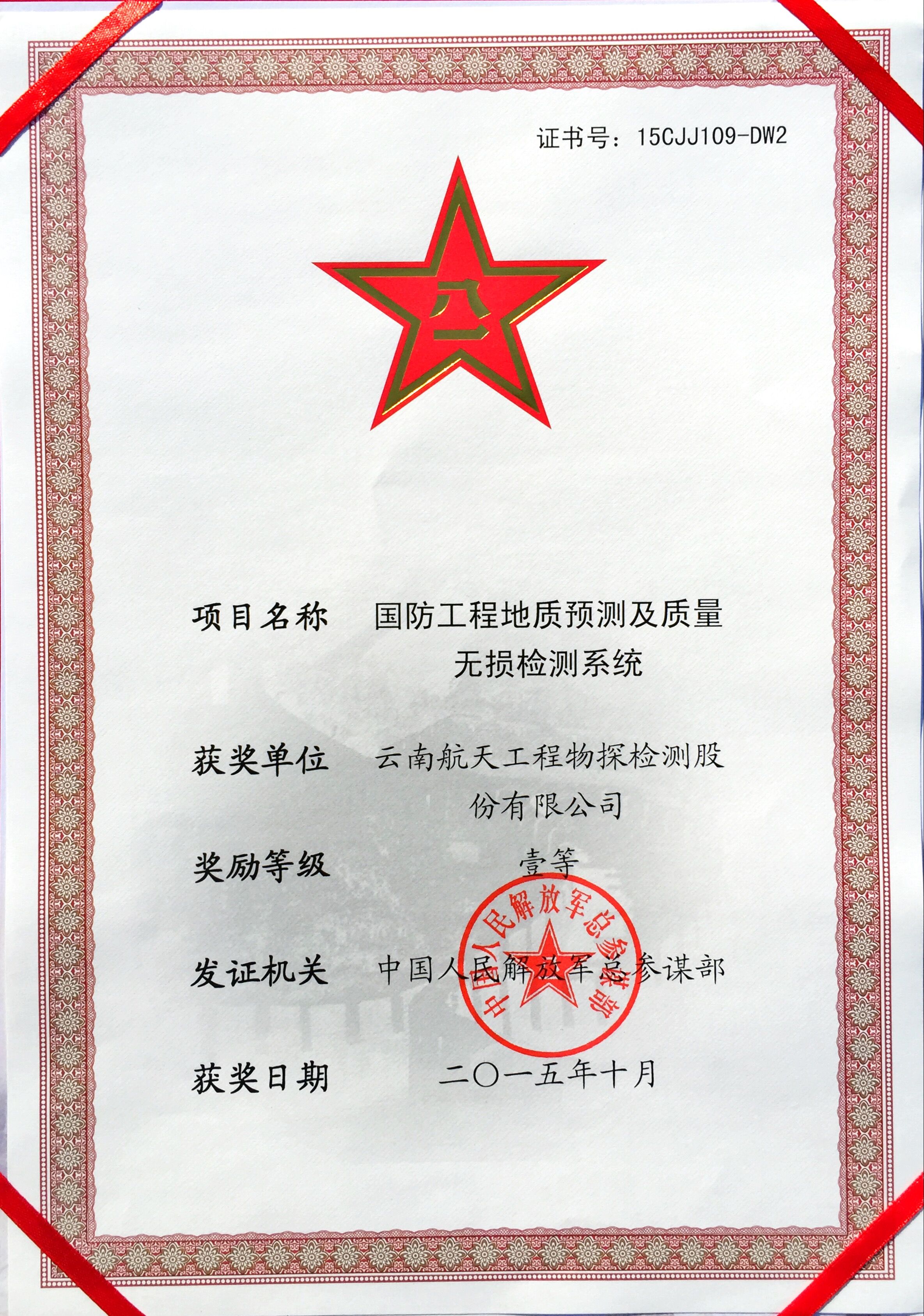 全軍科技進(jìn)步一等獎